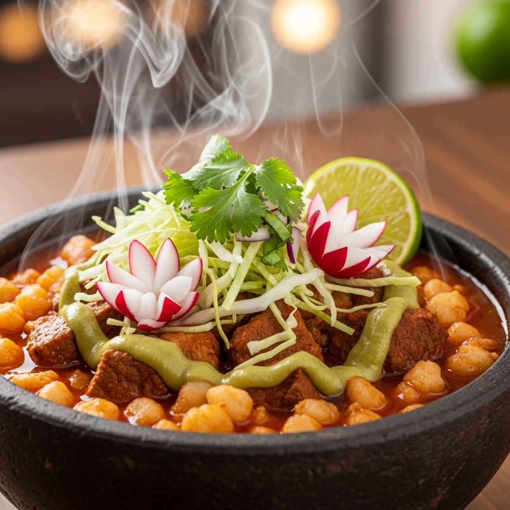 Posole, made with hominy corn, red or green chile, and pork, is deeply tied to tradition. Served at Christmas and New Year’s, it symbolizes abundance and family. Today, you’ll find it in Albuquerque restaurants and at festivals across the state — often topped with lime, cabbage, and oregano.